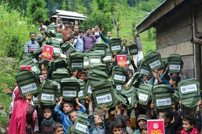 Muhammad Talha Mushtaq's Rotaract club delivered backpacks filled with school supplies to children.