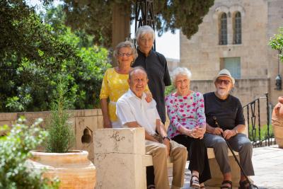 Members of the Rotary Club of Jerusalem, including (from left) Carry Polak, Louis Polak, Dan Shanit, Ruth Harris, and David Seligman, promote peace through their projects, with a particular focus on bringing together Jewish and Arab youth.