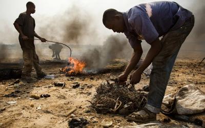 Before the vast Agbogbloshie scrapyard in Accra, Ghana, was demolished, teenagers burn cables from computers and other electronic devices to recover valuable copper.