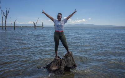 ケニアのナイバシャ・ローターアクトクラブを通じてナイバシャ湖の清掃活動に参加したユニス・カマウさん。「この湖を大切にしなければ、ナイバシャの社会全体が崩れてしまいます。私はここの人びとのことを大切に思っています」