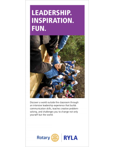 - Customize promotional cards and posters with details about your program or download a RYLA banner from Rotary’s Brand Center.