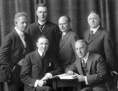 アーチ・クランフ会長と1916-17年度理事会。上列(左から):F. W. ガルブレイス・ジュニア、E. レズリー・ピジョン、チェスリー R. ペリー、ガイ・ガンディカー。下列(左から):アーチ C. クランフ、アラン D. アルバート