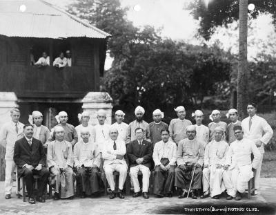 In Burma (now Myanmar), Davidson found some clubs already established, including one in Thayetmyo. He is shown here with members of the club, which he formally reorganized on 3 September 1929. On 30 September, it became the first club chartered in Burma. By the end of the 1970s, all Rotary clubs in the country had closed. Rotary was reintroduced when the present-day club in Yangon was chartered in May 2014.