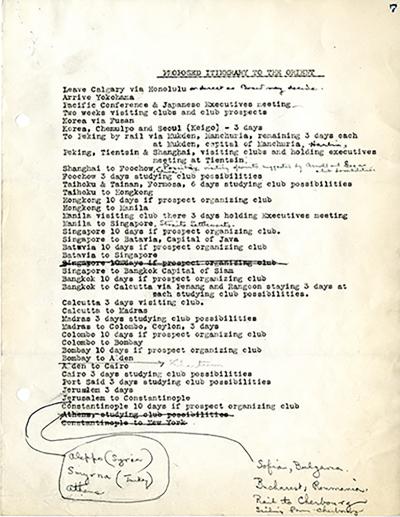 Throughout the trip, Davidson wrote extensive reports and sent them back to Rotary headquarters in Chicago. In one report, written en route to Burma (now Myanmar), Davidson reflected, “Last night, I made out another itinerary which is the most humorous thing I do. Those of the past have meant nothing except to show that I was moving in a certain direction. ... It makes me laugh to think that when I first considered making this trip that I had six months in mind.”