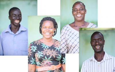 左から:Finemindのカウンセラー、チャールズ・アニワーさん、ロゼリン・ラムワカさん、マーガレット・アヤーさん、ケネス・オカンさん。写真提供:Khullood Rahman