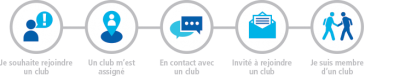 Les clubs acceptent des nouveaux membres sur invitation. Répondez à quelques questions vous concernant et sur vos centres d’intérêt pour que nous vous mettions en contact avec des dirigeants locaux qui vous orienteront vers un club qui vous correspond.