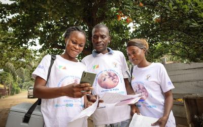 Sandrine Lina (left) and other vaccinators hit the streets with cellphones that tracked their progress during an outbreak response campaign in the Republic of Congo.