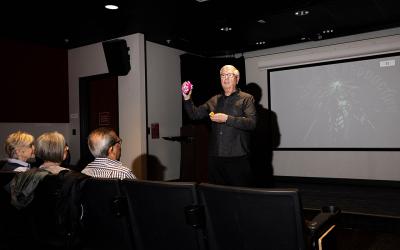 Phil Clarke, who joined Rotary on a quest for friendship, launched a film club that hosts screenings at a library. “I’m taking gradual steps to really get to know people on a deeper level,” he says. “That was my goal in the first place. And I think it’s working pretty well.” Images credit: Rebecca Stumpf