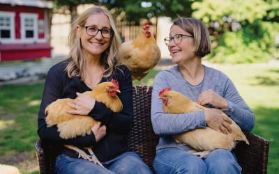 Cindy Volyn and Kris Cameron became friends in Rotary and bonded over their shared love of raising backyard chickens. Image credit: Jovelle Tamayo