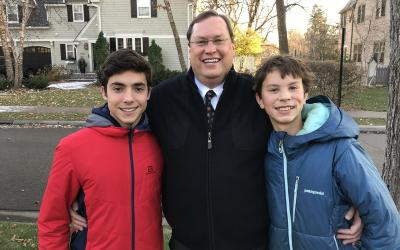 Gump and his family hosted a Rotary Youth Exchange student from Spain, Paco Tebar Gomez, at their home in 2017-18. During his stay, Paco’s dad died by suicide, and the family’s church in Spain wouldn’t perform a funeral service. Tom and his wife, Catherine, now a member of the Rotary Club of Edina, flew Paco’s mom and two siblings to Minnesota so that the family could grieve together.