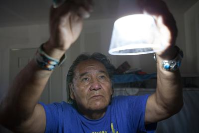 Since Durango Daybreak started coming to Sanostee in 2012, volunteers have supplied more than 40 homes with solar power in this municipality. Along with a panel of community leaders, Smith, a jovial man who is quick to laugh and break out into Johnny Cash songs, has helped identify the households that would benefit most from the solar lights. He also shows installation crews to the houses, many of which do not have addresses and are miles from the nearest paved road.