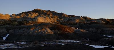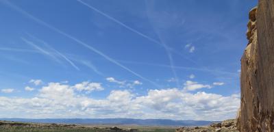 The wind was howling, kicking up sheets of dust, making the town of Shiprock look like a scene from an apocalyptic movie. But overhead, long spine-like clouds lay across a desert sky turning pink and purple with sunset.