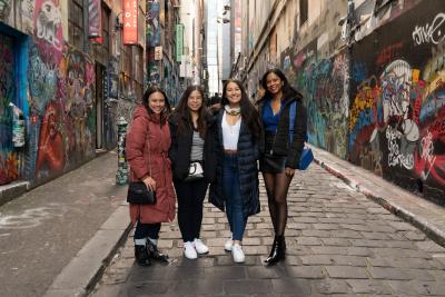 Rotaract Australia led a tour of Melbourne’s famous laneways the day before the convention’s official kickoff. Alex Malubag, Manuela Rodriguez, Erica Malubag, and Madeleine Govender pose against the colorful walls.
