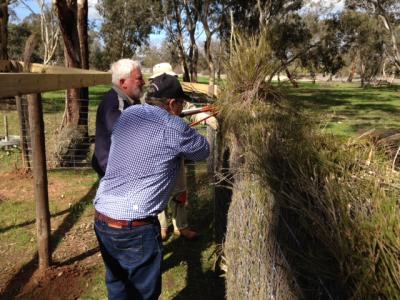 The roos were already snubbing tin shelters. “It was too loud when it rained,” said club member Trevor Butler. The solution: Using native broombush for new shelters.