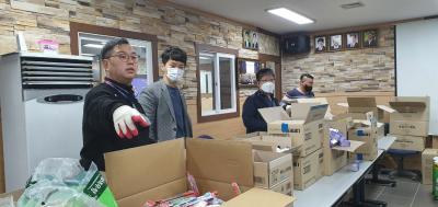 봉담 로타리클럽: 누룽지 200상자와 회원이 기증한 마스크 3만 장을 동해시에 전달