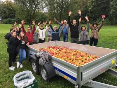 The Rotary Club of Göttingen-Sternwarte teamed up with the Production School Göttingen, a trades-oriented institution for teens, to harvest about 2 tons of apples and turn them into nearly 400 gallons of juice. The Apfelfest project culminated in October 2021 with the juice being donated to elementary schools or sold, raising more than $3,300 for End Polio Now. “The juice is amazing — a sweet-sour note, pure apple flavors,” reports club member Sönke Jaek. “And the dry apple mash was used to feed game such as deer and boar. They loved it.” Club members also serve as tutors and assist the students in writing resumes, finding internships, and applying for jobs.