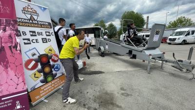 To put the brakes on dangerous driving, the Rotaract Club of Bistrița Omnia recently partnered with the police and a driving school to set up a car crash simulator at locations in the northern Transylvanian city. “It consists of a driver’s seat equipped with a seat belt, fitted on a moving platform that reaches a speed of about 18 mph,” says Christian Nistor, immediate past president of the club. “The platform crashes into a stopping bar, simulating the accident.” The device was built by the Rotaract Club of Târgu Mureș Téka. Interact and Rotary clubs have also helped with the project. During one simulation event in May, about 200 people were put to the test during the Drive Safely, Choose Life initiative, Nistor says. “Drivers are reminded of the importance of seat belts and the effect of speed in a car crash,” he says.