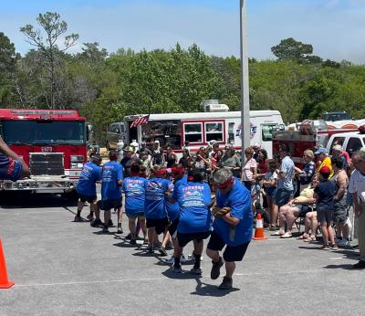 Four Rotary clubs in Florida flexed their muscles with a fire truck pull to raise more than $15,000 to refurbish the entrance of an assisted living facility. Sixteen teams competed to be the fastest to tug the 17-ton truck 50 feet across the parking lot of a sponsoring brewpub. Led by the Rotary Club of Mid-Bay Bridge (Choctawhatchee Bay), the April event drew about 400 people. Joining the effort were the Rotary clubs of Destin, Fort Walton Beach, and Niceville-Valparaiso, which sponsored the winning team of Niceville High School football players. Members of two Knights of Columbus chapters and the Boggy Sisters, a senior support group, assisted the Rotarians. Community partnerships “lightened the load and made the event possible,” says Steve Wolfrom, immediate past president of the Mid-Bay Bridge club.
