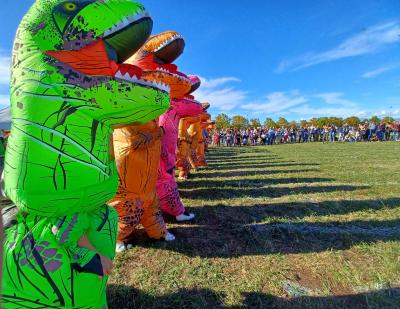 More than a dozen Rotarians and friends in southeastern France donned inflatable dinosaur costumes and stumbled along a 100-meter course in a playful footrace that raised funds and awareness for Rotary’s mission to end polio. Organized by District 1730, the T-Rex Race took place last October during the Fréjus International Air Festival, a kite fair that draws thousands of people. “The idea came to me to create an event to rejuvenate the image of Rotary in the fight against polio,” says Dinh Hoan Tran, the district’s immediate past governor and member of the Rotary Club of Nice. Spectators could place bets on the contestants. “We made people laugh and we informed people,” says Tran. More than 40 of the district’s 71 clubs participated in the event, as the district motivated clubs to “support PolioPlus to the tune of about $45,000,” he says.