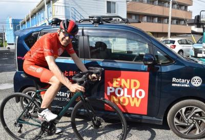 Yoichiro Miyazaki switched into high gear to raise money for the PolioPlus Society. Miyazaki, a member of the Rotary Club of Tokyo Mitaka, cycled the length of Japan last October, covering 2,500 kilometers (1,553 miles) in 24 days. “If you don’t act, there’s no point,” he tells Rotary Italia magazine, using a slogan developed for his year as governor of District 2750 in 2023-24. Along the way, fellow district governors, other Rotarians, and well-wishers cheered for him as he traversed twisting roads, uphill climbs, and tunnels. RI General Secretary John Hewko, another avid cyclist, offered a video message of support. Prompted by news coverage of his ride, donors contributed $140,000. Miyazaki continues to pedal strong: In late April, he finished the Osaka-to-Tokyo challenge just three hours shy of the 30-hour goal en route to more fundraising for polio.