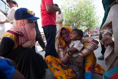 A Rotary vaccination team immunizes children against polio at a railway station in Karachi, Pakistan.