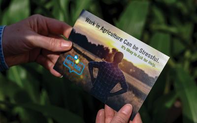 A postcard promoting mental health resources for rural agriculture workers.