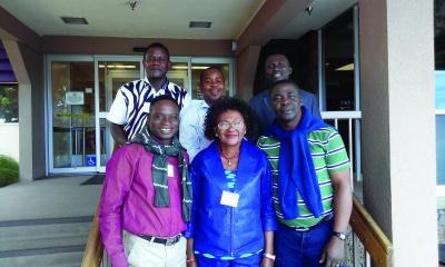 The medical professionals from Nigeria (clockwise from top left: Sheriff Hussain, Dr. Obioma Obikeze, Dr. Finomo Finomo, Dr. Dennis Allagoa, Princess Frances Kemelagha, and Adeolu Tella) visit Sebastopol, Calif., for telemedicine training.