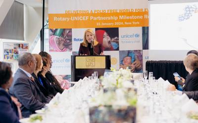 Since Rotary and UNICEF began their partnership in 1988 as two of the founding organizations of the Global Polio Eradication Initiative, the world has gone from 125 polio-endemic countries to two, Afghanistan and Pakistan. There were an estimated 350,000 cases of paralytic polio in 1988 and only 12 in 2023. And since the partnership’s inception, The Rotary Foundation has donated $1 billion to UNICEF — a milestone celebrated at an event in New York City in January. To mark the occasion, Rotary magazine interviewed UNICEF Executive Director Catherine Russell about what that funding supports, why Rotary and UNICEF make great partners, and what’s ahead for polio eradication.
