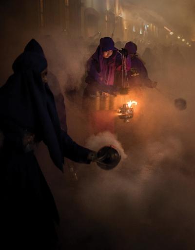 Steinmetz: Sometimes you like a picture for what it doesn’t show. Here, you can’t see the ground or the background, just the emotions. What the smoke conceals creates mystery. In a way, it is like the mystery of religion itself. And this is a very sensuous photograph; you can almost smell it.