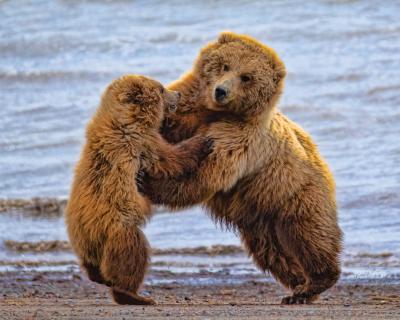 Steinmetz: We shouldn’t project human feelings onto animals, but you can read the child-parent relationship in the postures here. I think of times I have seen this sort of scene in the wild, with bears on the shore catching salmon.