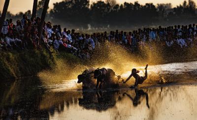 Winter: Peak action in magic-hour light — what more could you want? Maybe a bit of golden backlighting under a crowd transfixed by the moment, just to top it off? This photograph has that too.