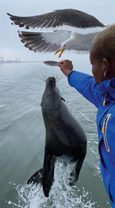 Winter: Absolutely perfect timing captures the battle between sea and air for feeding-time supremacy. The seagull’s wings are in peak extension, with every single feather on display, beak open, ready to snatch that tasty morsel from what seems to be a very calm person. A very nice execution on a fun photograph.
