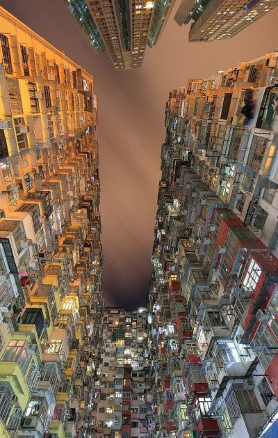 Winter: At first I thought these were stacks of shipping containers waiting to be lifted onto a cargo ship. Then I looked a little closer and saw that it was a different kind of storage — the human kind. This is a very interesting use of an ultra-wide-angle lens and an unexpected low-angle perspective along with mixed-source nighttime lighting and a surreal illuminated city sky to create this beautiful abstract architectural study that is also a poignant commentary on the modern human condition.