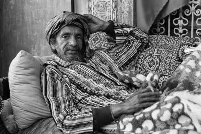 Winter: One of the very few portraits I looked at that went beyond the feeling of an ordinary posed snapshot and showed quiet grace and a direct and intimate connection between the subject and the photographer. A beautifully detailed face is but one of the many patterns and textures that make up this photograph — from the weathered paint on the walls to the multiple decorative iron grates and stone details, to the different fabric textures and designs. Somehow his eyes still pierce right through that patchwork of textures.